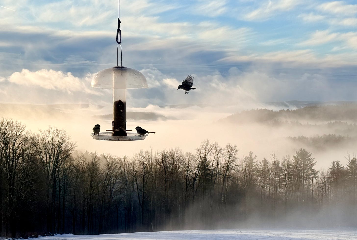 So in the pre-dawn (and somewhat perpetual) darkness of these days I go, with fire and journal, in search of the stories to orient myself to the day. One simple way I favor the possibility of finding that which I’m hoping to find is to be sure that our bird feeder is full.