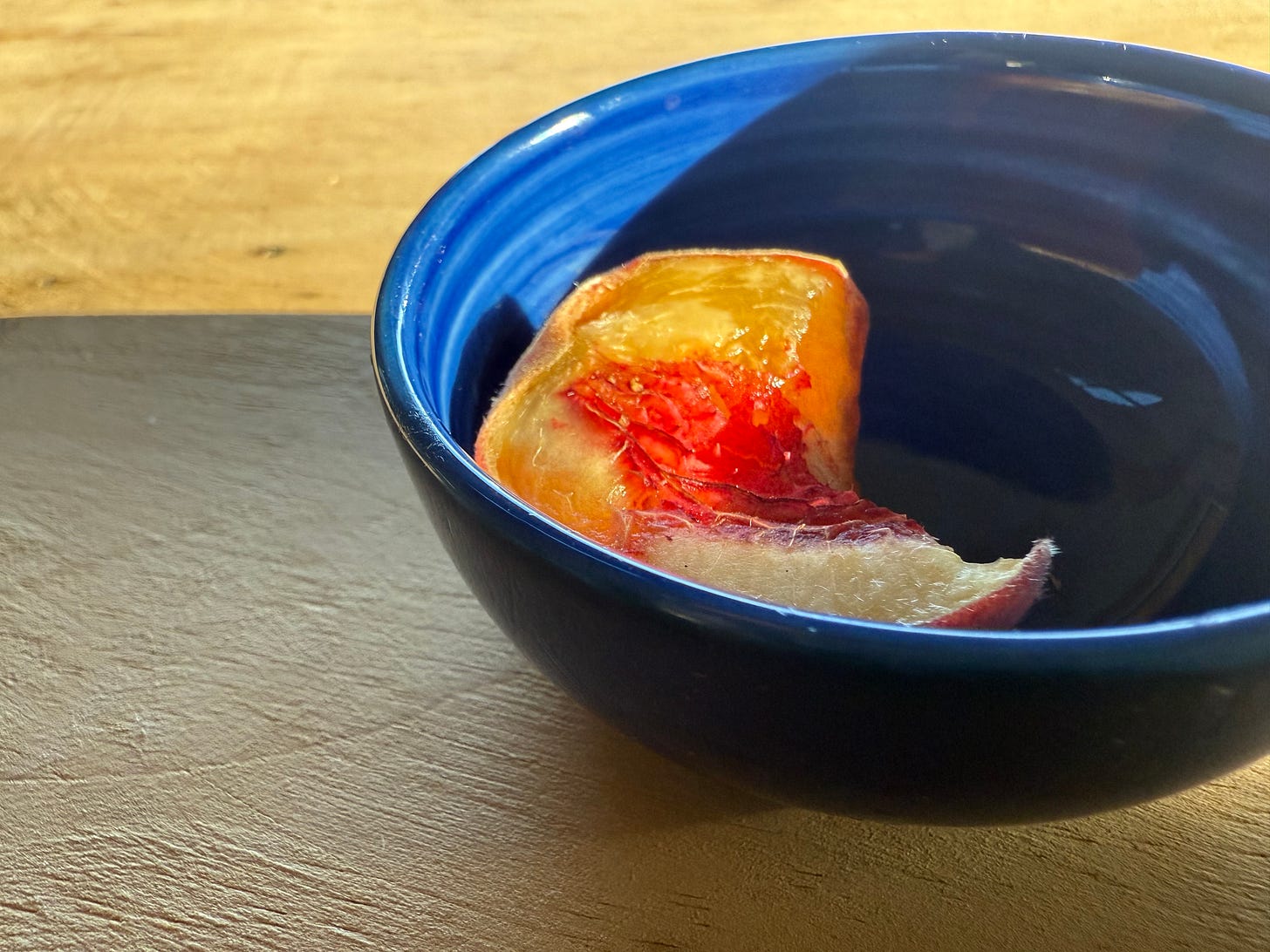 It is sweet with the memory of life and love around the yard where it was planted distant but present now as ever in this season. Remember this It is slightly salty with the tears you cried, seeking and finding seeking and finding love, everywhere but in yourself. Accept this The wound of its dark heart hides a pit of shame that is hard to swallow It will break out all your teeth if you gnash it Or, it can become a new life. Plant it For within that life is possibility. A potency so bright that it alone will feed your family simply with the way it makes you burn. Kindle it All your longing starts with learning to belong to yourself Then and only then will you taste that you yourself are perfectly sweet and salted, pitted and bitter And worthy without proof